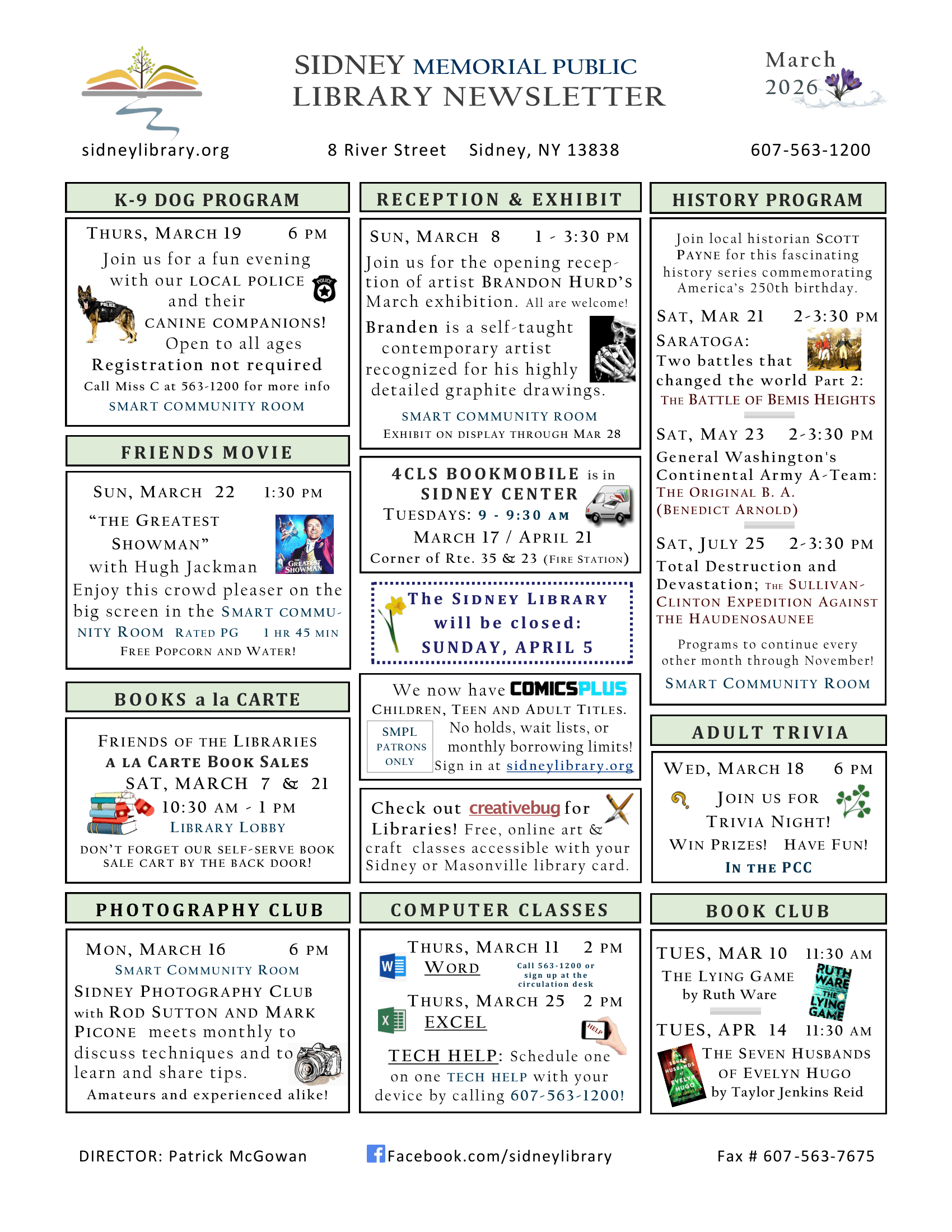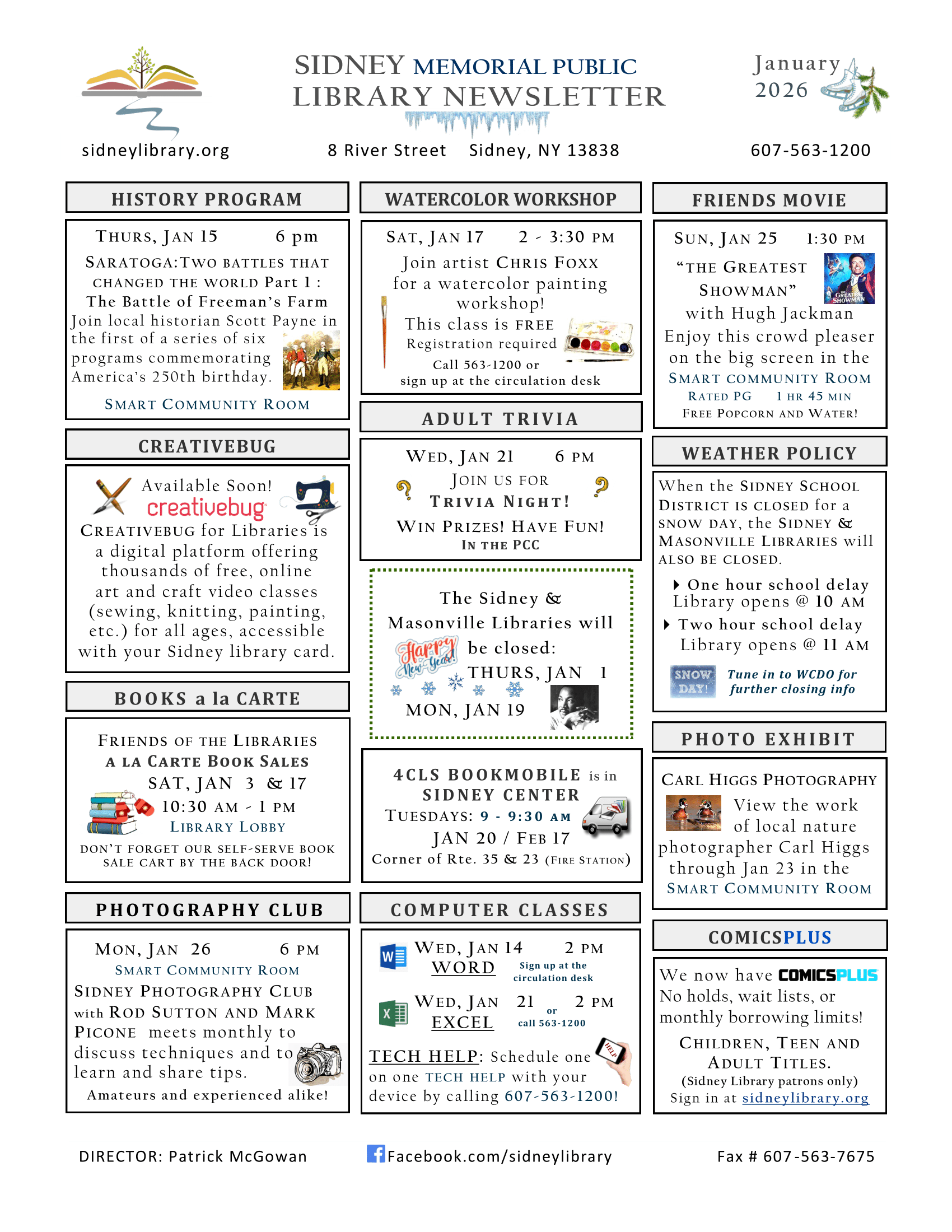 View the Monthly Library Newsletter here or with the image below!